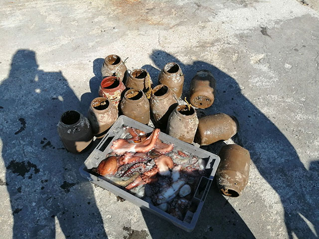 Κατασχέθηκαν δώδεκα κιούπια, ενώ κατασχέθηκε και εκποιήθηκε συνολική ποσότητα 22 κιλών αλιευμάτων (χταπόδια).