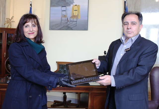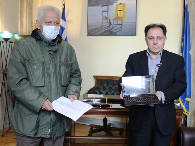 Σήμερα, Τρίτη 7 Απριλίου 2020, ο Δήμαρχος Μυτιλήνης, Στρατής Κύτελης, ανταποκρινόμενος στα αιτήματα των Διευθυντών των σχολείων, παρέδωσε στη Διευθύντρια του Λυκείου Αγιάσου, Γιώτα Φράγκου, και στο Διευθυντή του Α’ Γυμνασίου Μυτιλήνης, Αλέξανδρο Κουτσαντώνη, tablets με αποσπώμενα πληκτρολόγια, τα οποία θα δοθούν σε μαθητές με οικονομική δυσχέρεια, καθώς τα σχολεία έχουν κλείσει και η εξ αποστάσεως online εκπαίδευση είναι αναγκαία λύση για τους μαθητές.