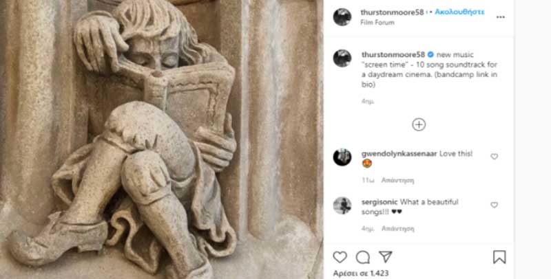 Καινούργιο άλμπουμ, instrumental album, κυκλοφόρησε ξαφνικά ο Thurston Moore. Το Screen Time είναι διαθέσιμο στο Bandcamp και το πρώην μέλος των Sonic Youth ανήγγειλε το πρότζεκτ στο Twitter γράφοντας «Καινούργια μουσική του Thurston Moore “ screen time” (10 τραγούδια)».