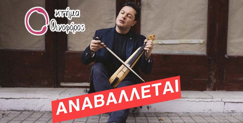 Λόγω έκτακτης ασθένειας του καλλιτέχνη η προγραμματισμένη μουσική βραδιά με τον Ματθαίο Τσαχουρίδη στον Κτήμα Οινοφόρος για το Σάββατο 17 Φεβρουαρίου δεν θα πραγματοποιηθεί. Ως εκ τούτου η μουσική βραδιά ΑΝΑΒΑΛΛΕΤΑΙ και θα οριστεί νέα ημερομηνία για την διεξαγωγή της. Όσοι έχουν προμηθευτεί εισιτήρια θα μπορούν είτε να πάρουν τα χρήματα τους πίσω είτε να […]